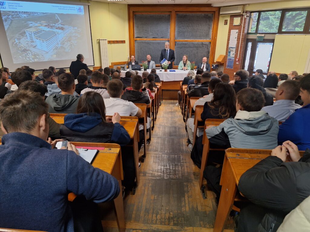 Studenţii Facultăţii de Inginerie Mecanică, Autovehicule şi Robotică, programul de studii Mecatronică, au participat la concursul national Zilele Educatiei Mecatronice, editia 2024, organizat în acest an de Universitatea Națională de Știință și Tehnologie POLITEHNICA București. La proba de Sisteme Mecatronice Industriale, unde au concurat cu studenţii din 9 centre universitare,